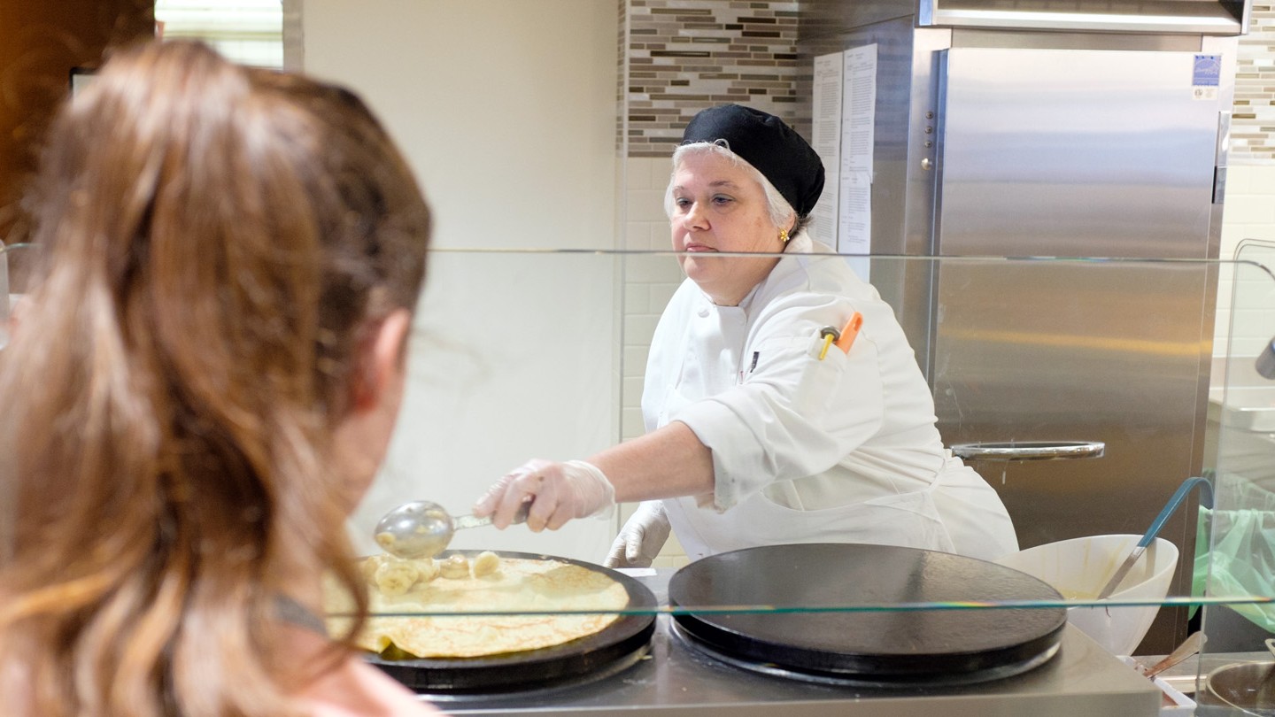 “I think it’s funny they call her Crepe Lady,” says Sarah Fried, general manager of Dining Services.